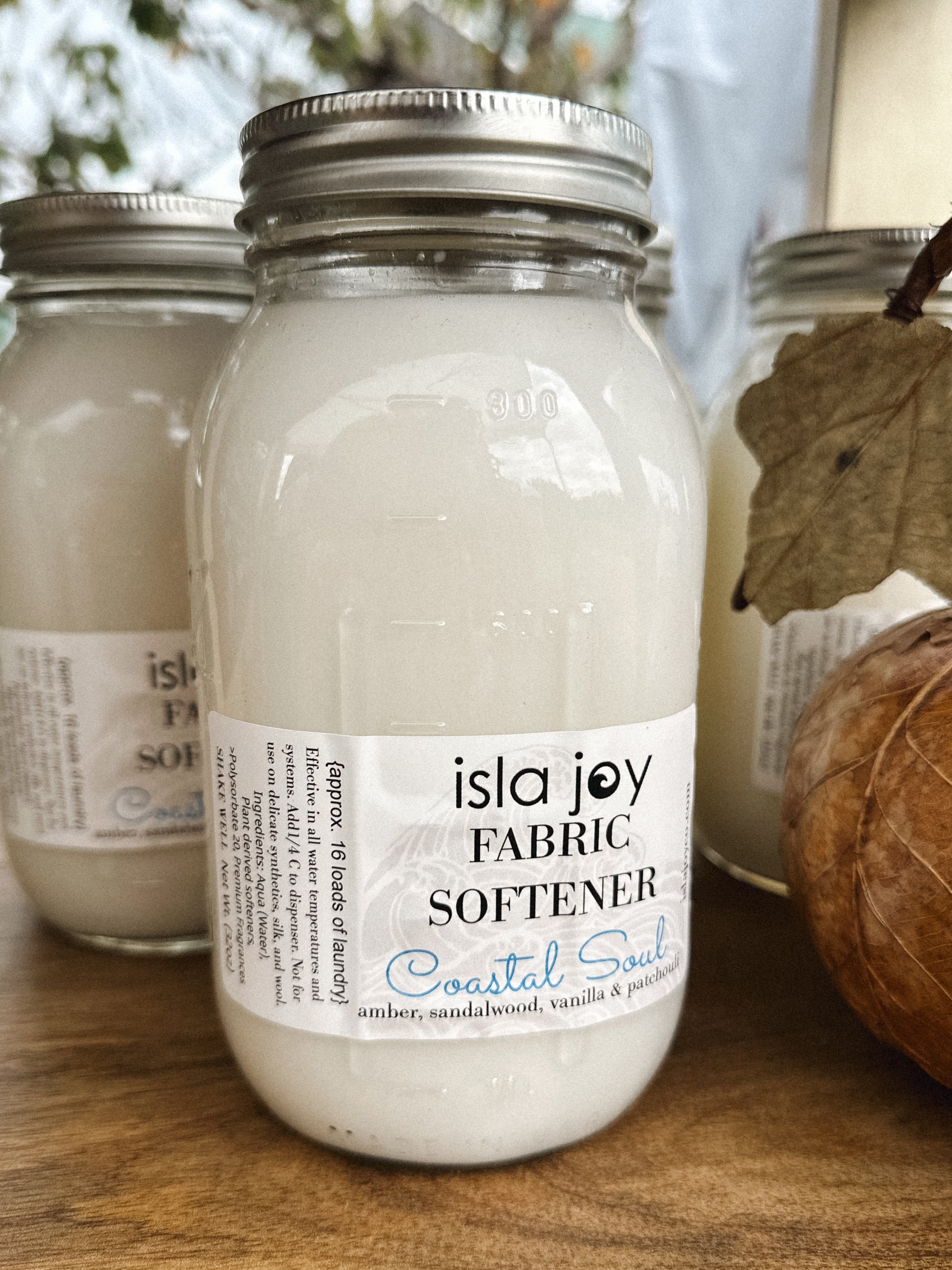 Our signature Coastal Soul Fabric Softener is a perfect pick me up for your clothes or linens that you want to freshen up. It’s like giving your favorite flannel, sweatshirt, sweater or blanket a warm embrace from a day spent in the breezes by the coast. Our signature Coastal Soul scent is loved by many and is the exact same scent and formula we use on all of our sun bleached flannels and oxfords! It truly was a labor of love. After much trial and error, I finally perfected this calm and cozy scent that I treasure and stand behind. Our signature scent is formulated with hints of amber, sandalwood, vanilla, and patchouli.
